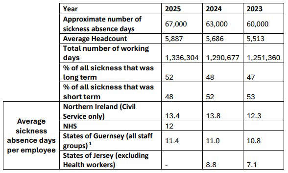 A States of Guernsey employee takes on average 11 sick days a year and he estimates that a single sick day costs the States £250 - or nearly £17M in 2025 - and deputy Cameron believes that is a conservative figure.