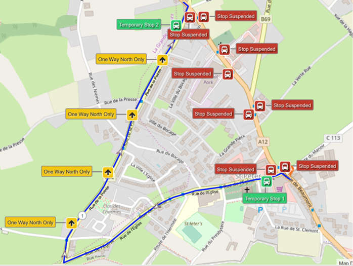"The current northbound bus diversion route will remain in place, using La Rue de L’Eglise and La Rue de la Pointe."